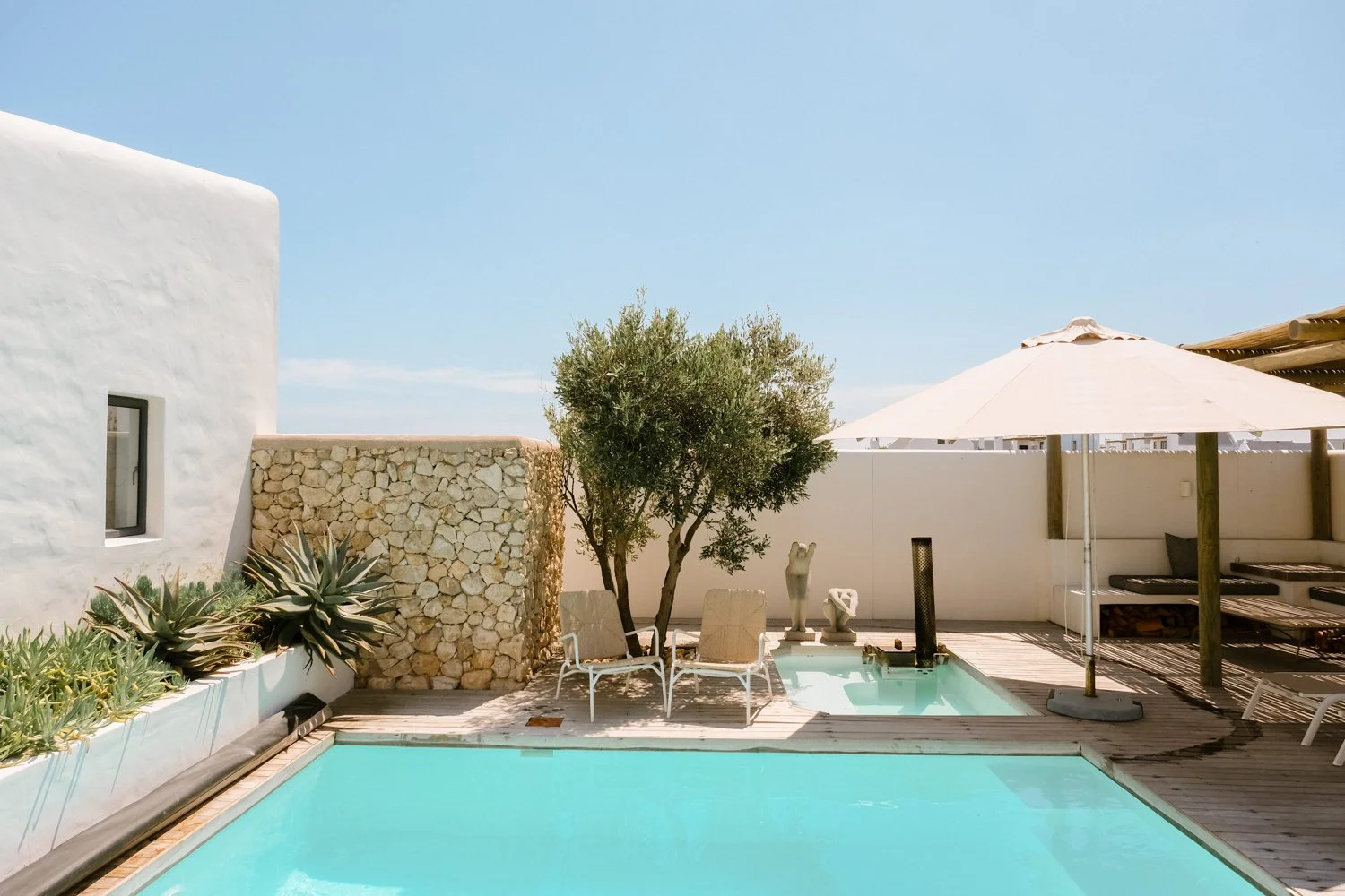 My eerste besoek aan Villa Kersbos was toe ek ‘n snoek moes gaan braai vir SABC 2 se The Insider program. Met jou eerste paar tree deur die hout hekkie word jy gegroet deur n groot verhitte swembad, rottang stoele wieg lui in die seebries en n pragtige olyfboom gooi sy skadu oor die kolkol warmbad. Griekeland op die weskus!