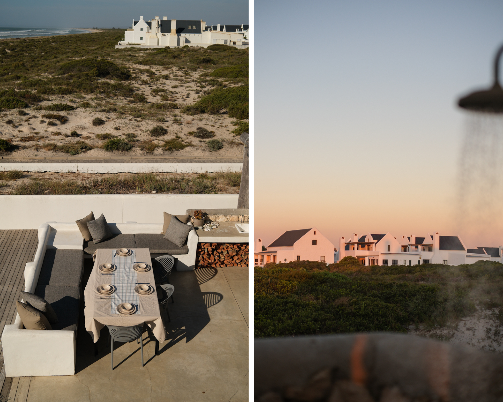 Die braai area is beslis een van die hoogte punte by Villa Kersbos, hier kan jy maklik 10 mense onthaal, met n prag uisig van die rye wit Dwarskersbos huise en die golwe wat breek in die agtergrond. Met die vuur wat brand en die son wat laag lê, verander die lug in n salmpienk kleur, die goue strale hang oor die mure en jy moet jouself knyp, want kan ‘n wegbbreek werklik so perfek wees.